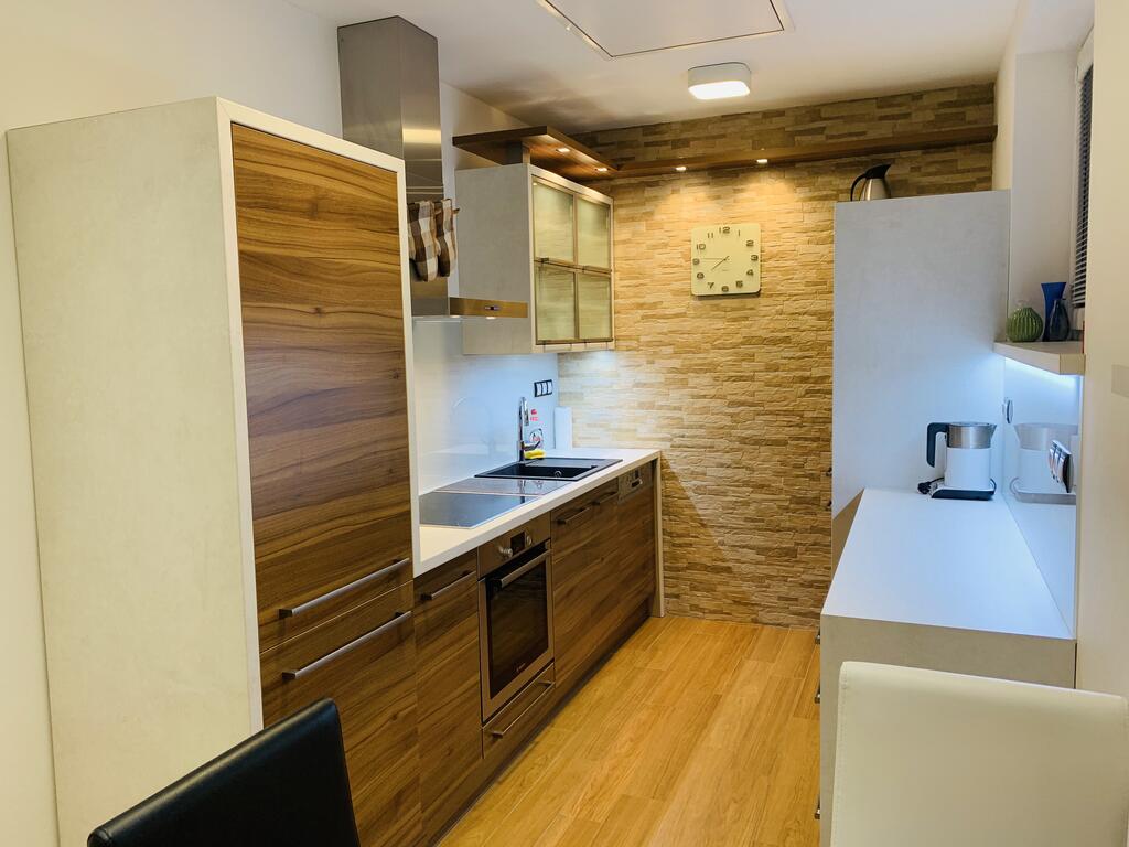 Ve společné kuchyni se nacházejí 2 stoly celkem pro 8 osob. Kuchyň je vybavena lednicí, varnou deskou, troubou, myčkou na nádobí a mikrovlnnou troubou.